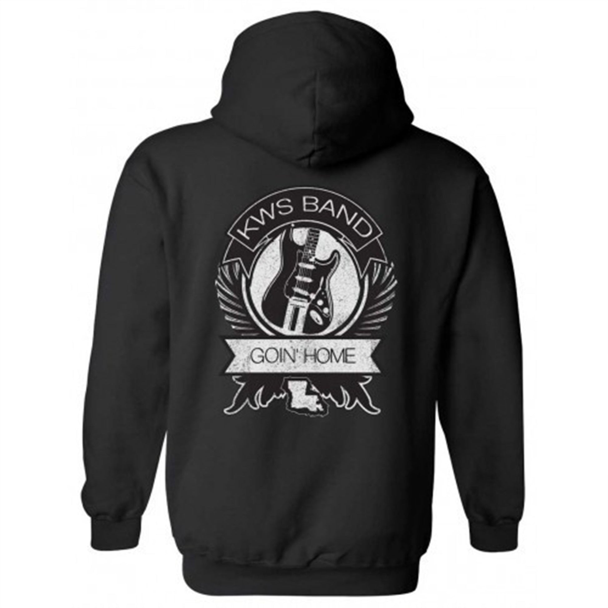 The KWS Band's release GOIN' HOME now has a hoodie to go with it keep you warm all winter long. This comfortable Unizex black Zip Up hoodie showcasing the GOIN' HOME Tour artwork on the back.